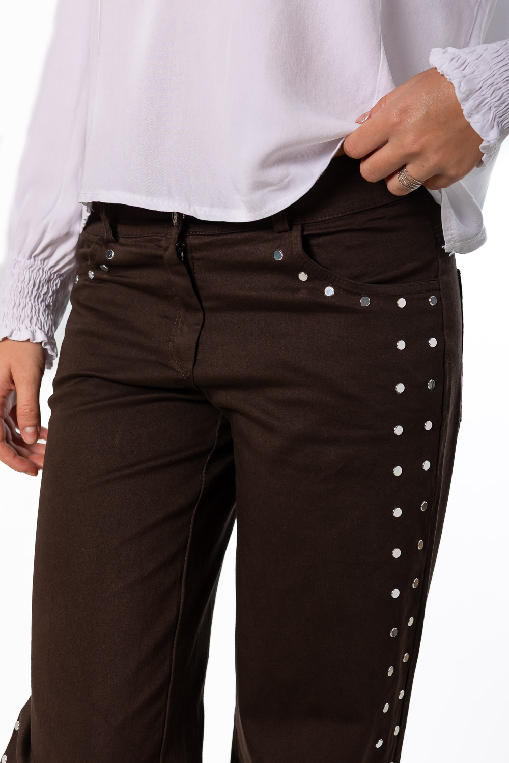 Pantalón Tachas Doble Marrón