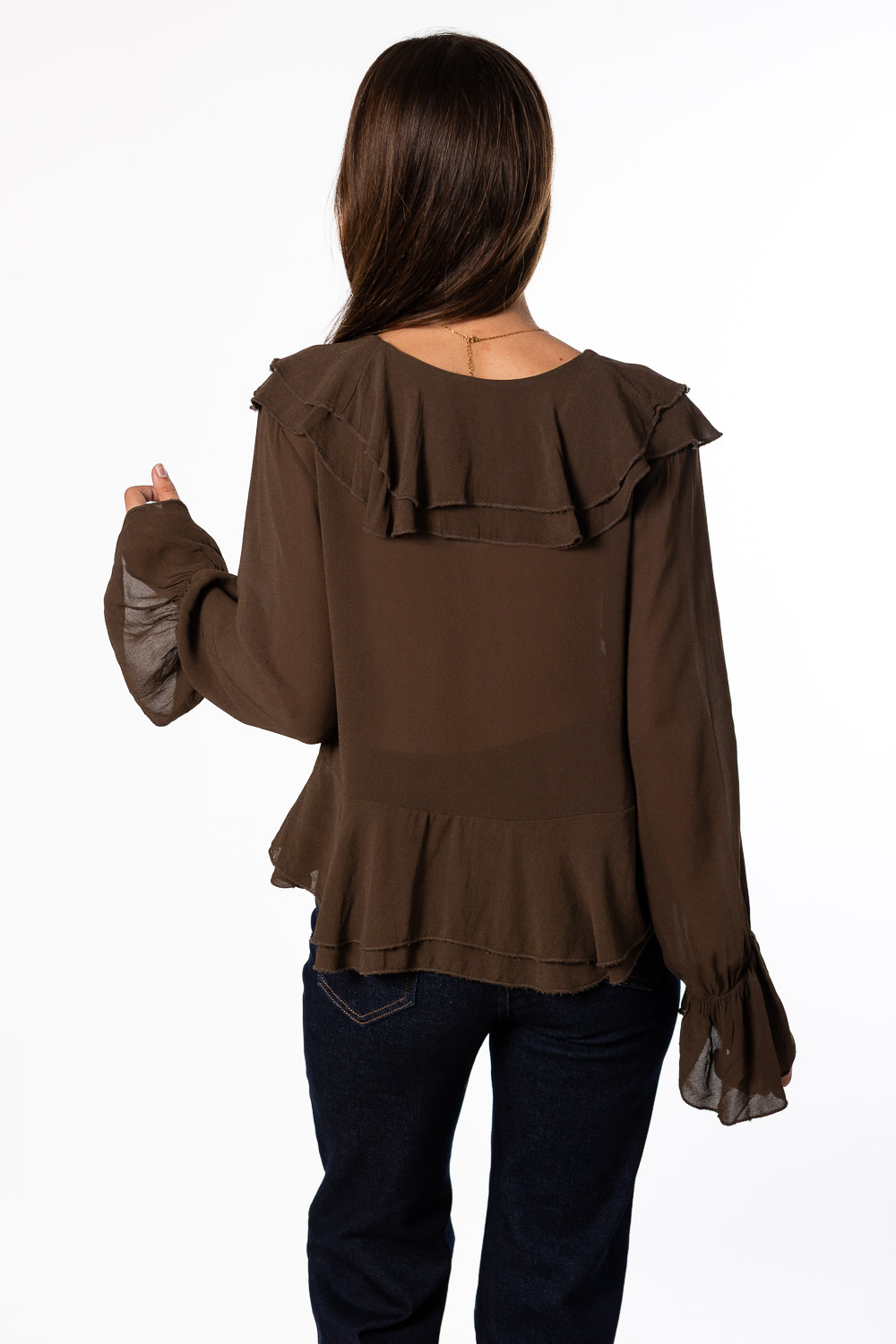 Blusa Maxi Volantes Marrón