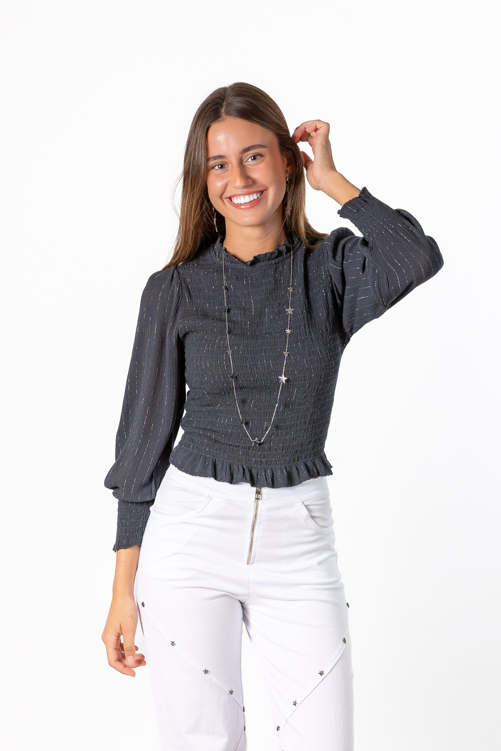 Blusa Nido Abeja Entallada Gris