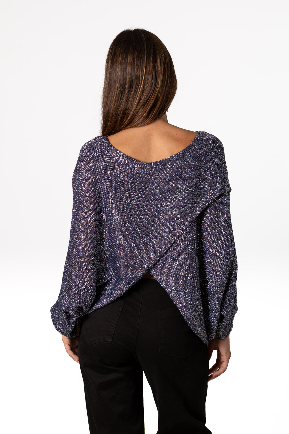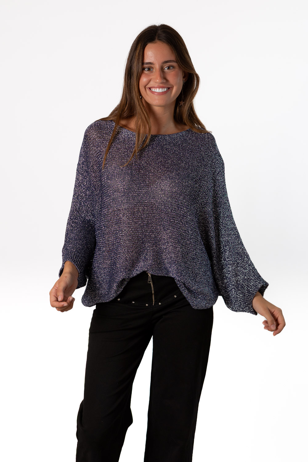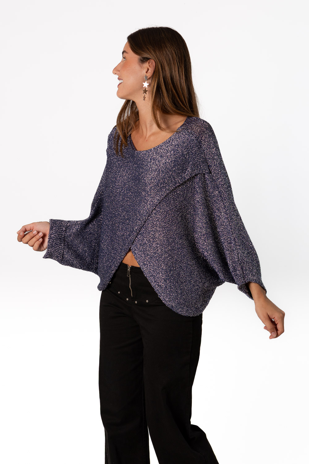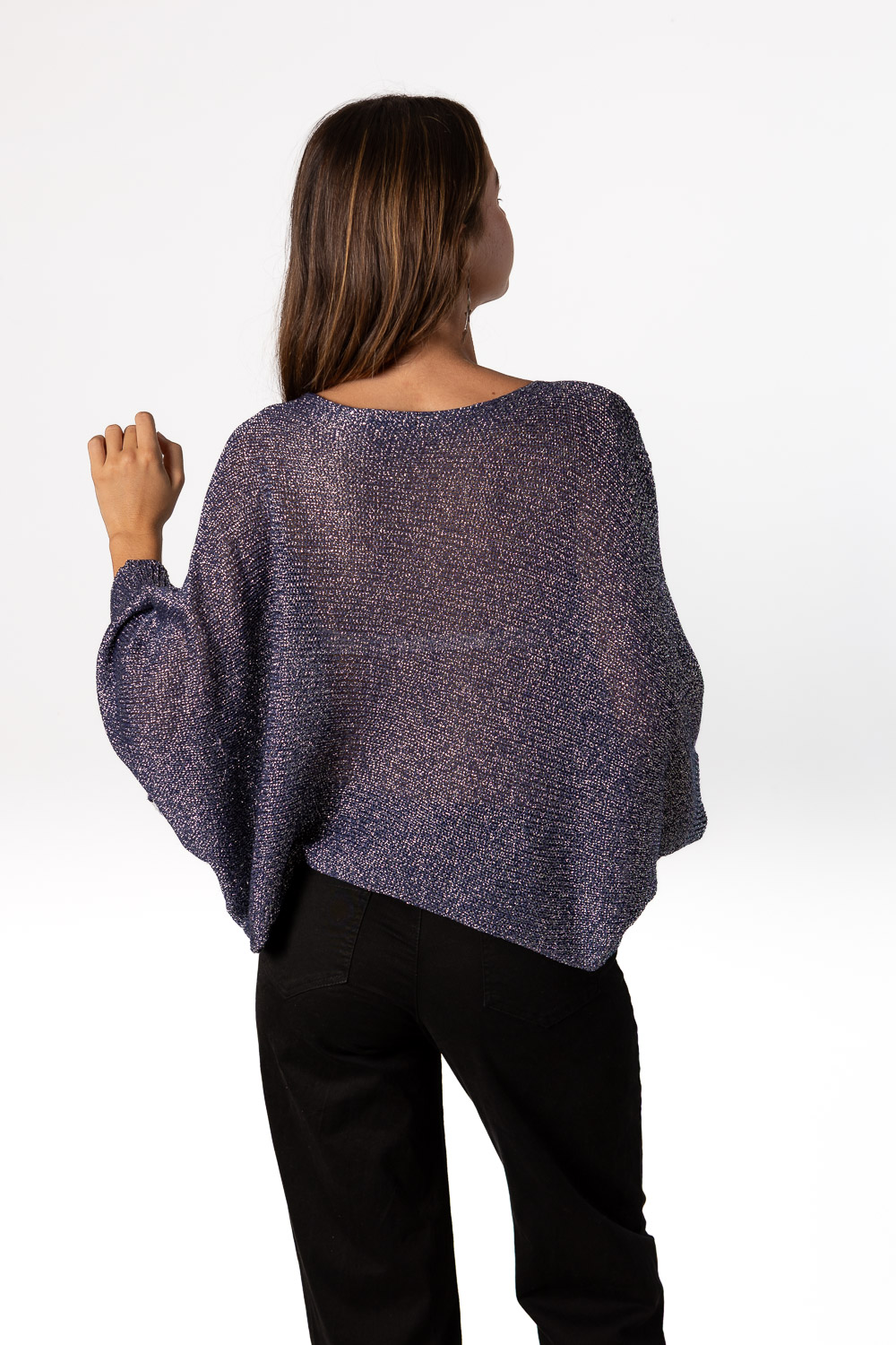 Jersey  estilo capa oversize con tejido muy elástico con brillo en color azul marino con destellos plata. Como puedes ver en las fotos este estilo jersey es LO MÁS y ¡en tendencia!. Súper elástico, con tejido como esponjoso y con un brillo brutal. Tiene rollazo, hazte con él. ¿Lo mejor? Es REVERSIBLE. Puedes ponerte la parte cortita delante o detrás, según quieras combinarla.