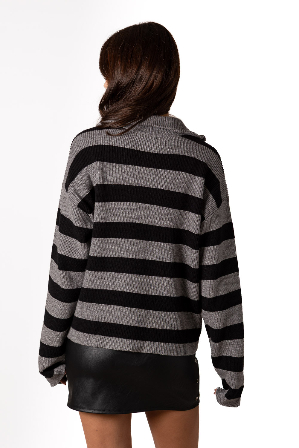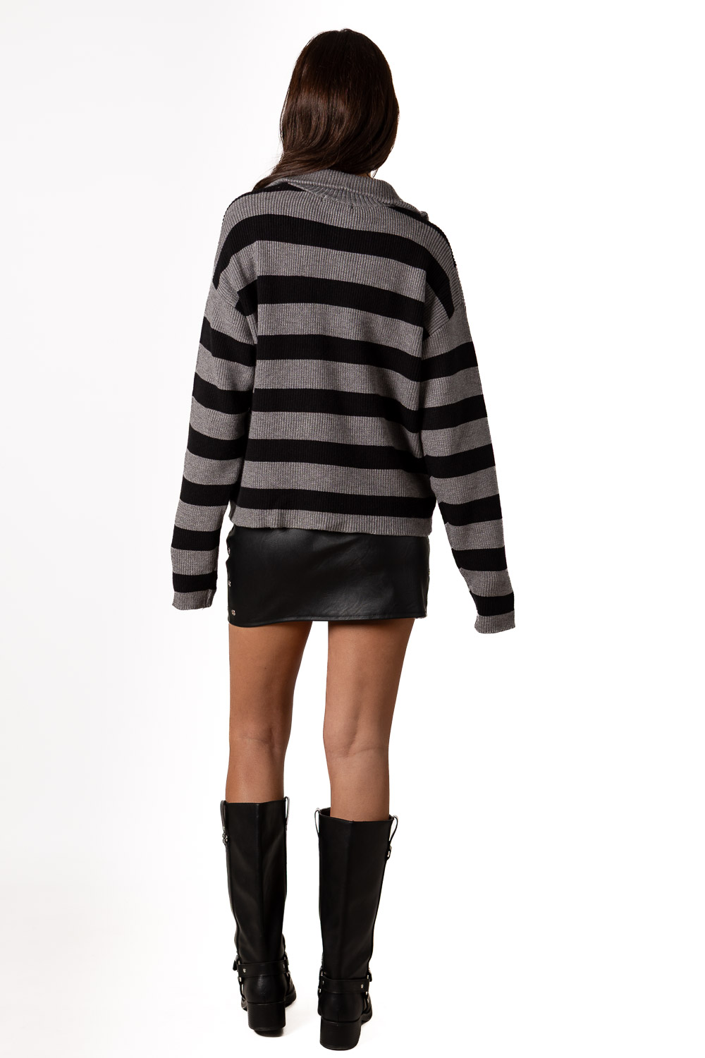 ¡Por fin os podemos enseñar el jersey más buscado de esta colección de otoño! Un jersey gustoso, de rayas horizontales gruesas con mucha personalidad, cremallera y cuello alto. Te va a flipar cómo queda. ¡Hazte con él porque va a volar!