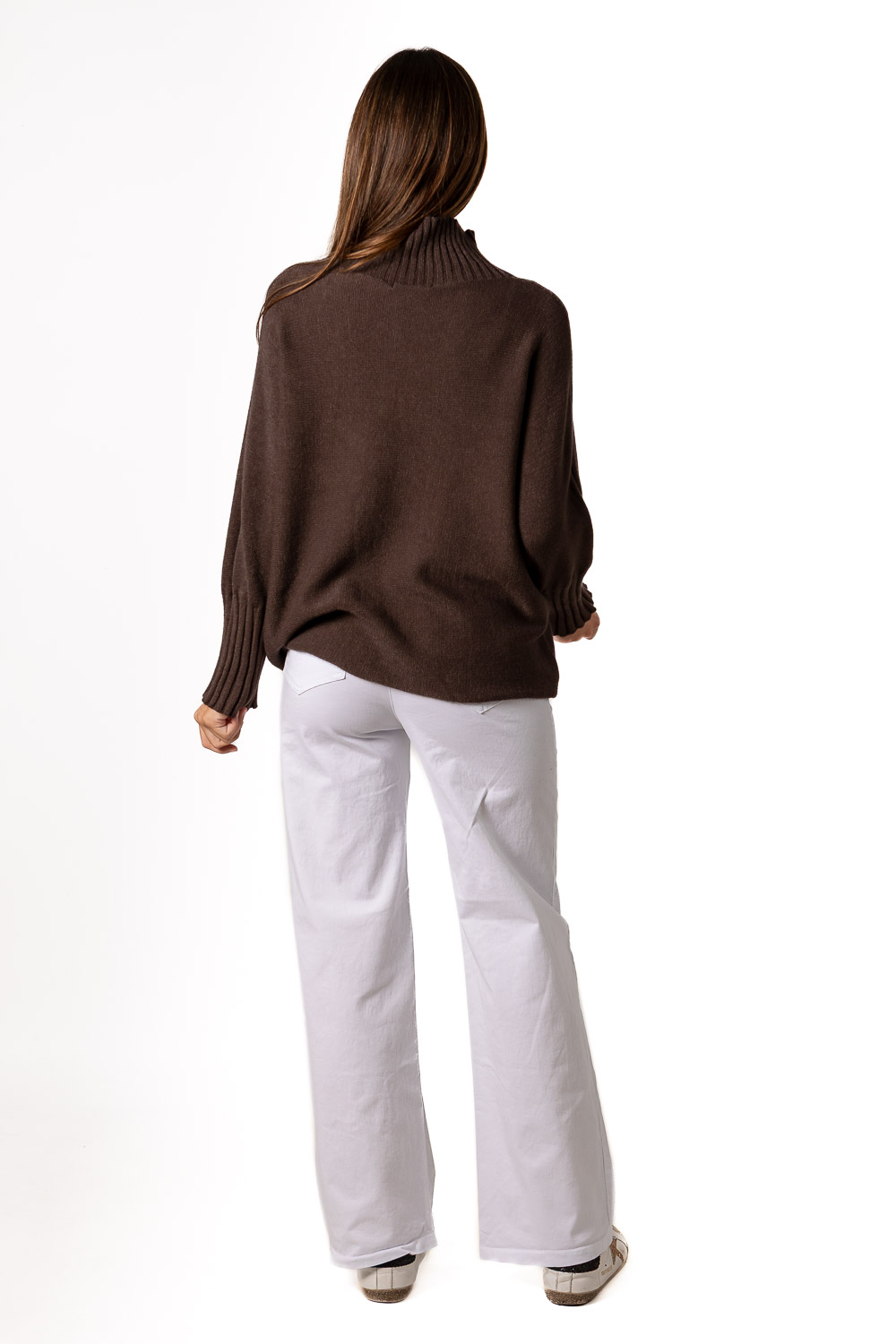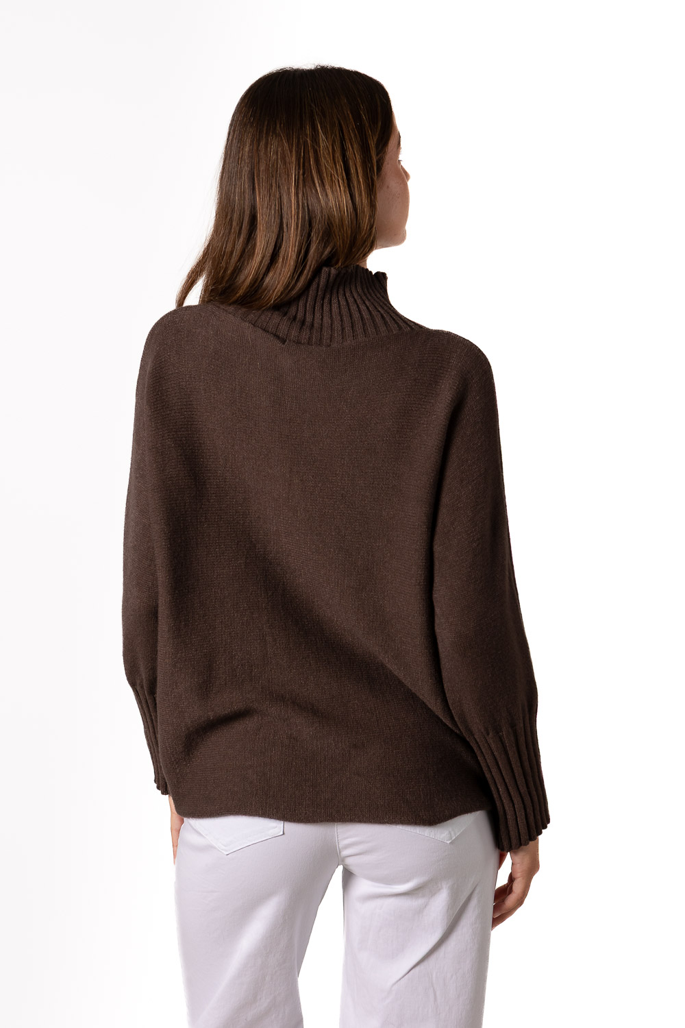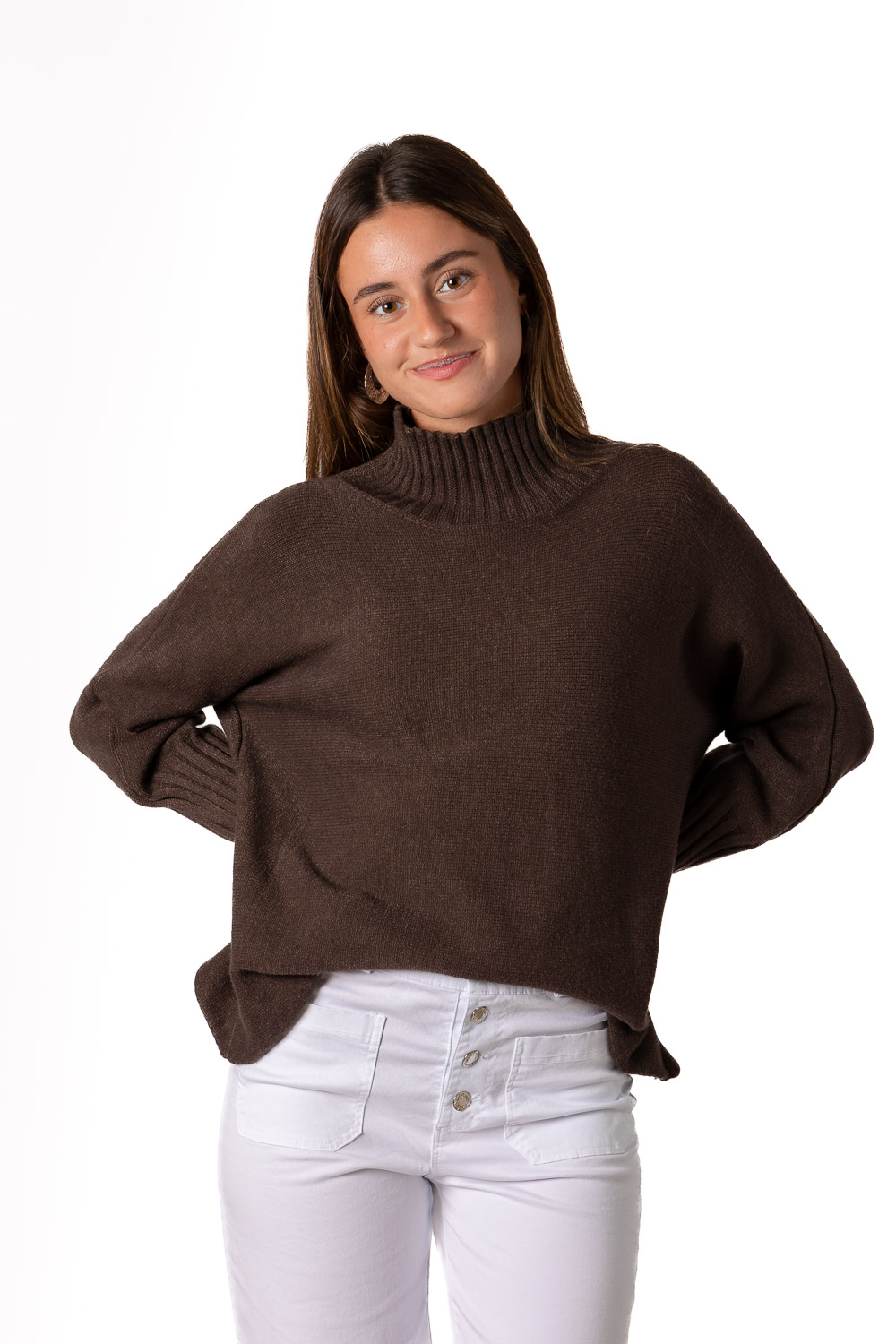 Jersey de cuello alto color marrón. Punto sencillo y canalé en cuello y puños. Es de corte recto, perfecto para llevar por fuera o por dentro de los pantalones. El hilo es muy gustoso. Color tendencia de la temporada. Combínalo con tus vaqueros y faldas de nueva colección.