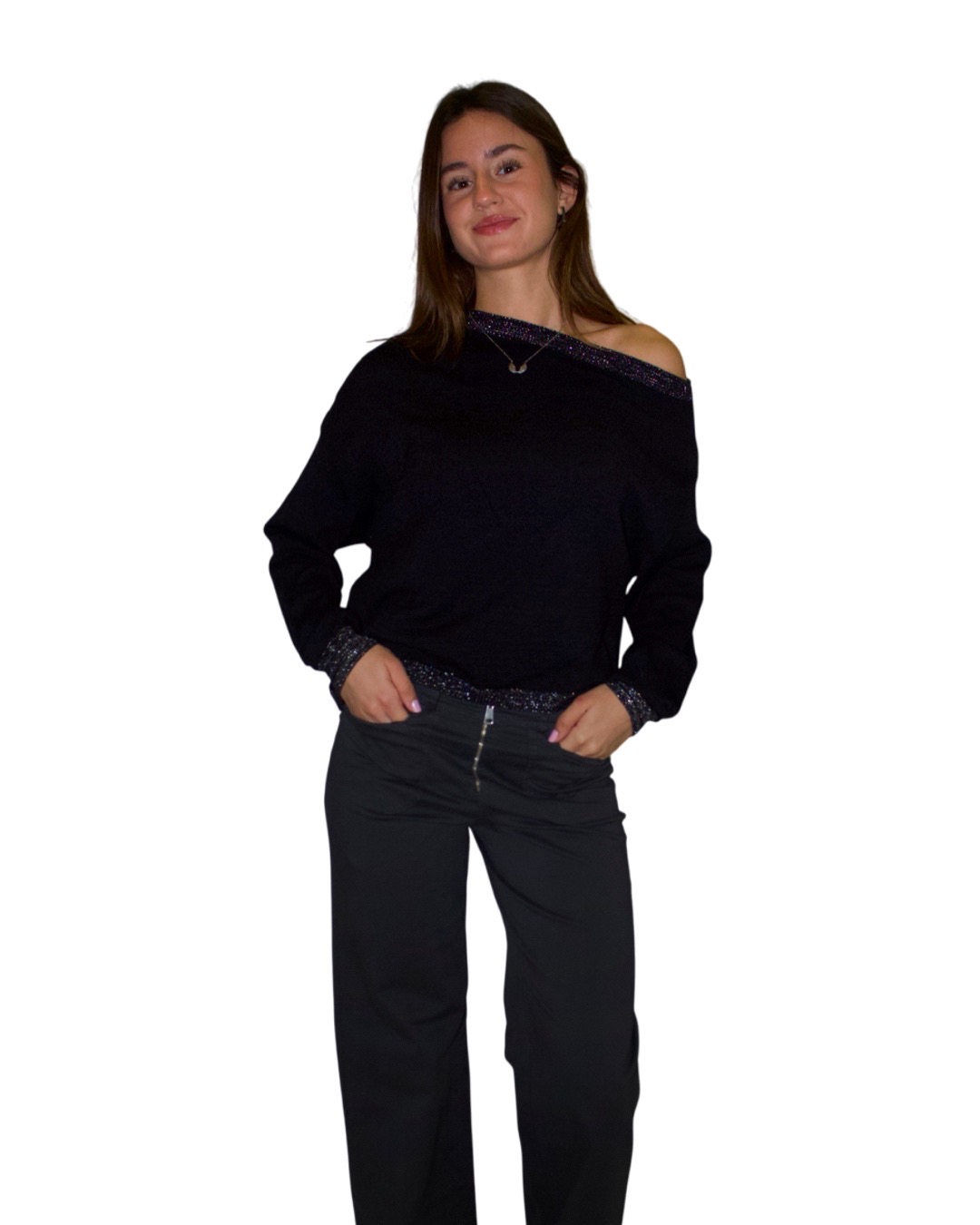 Jersey Detalles Glitter Negro