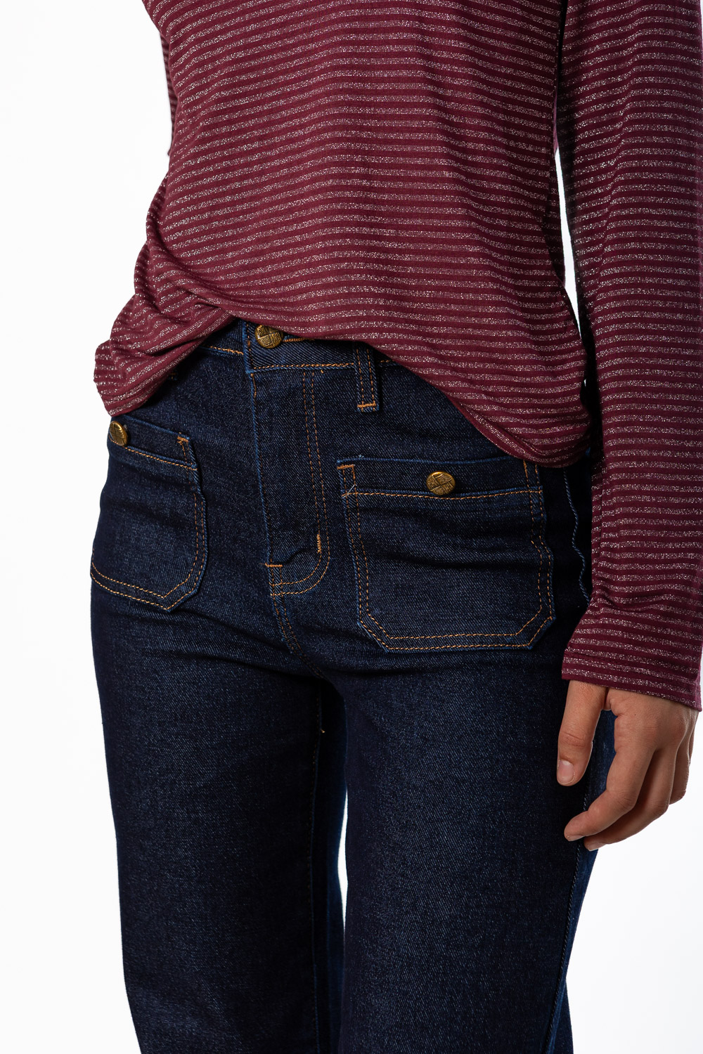 Vaquero Bolsillo Botón Azul