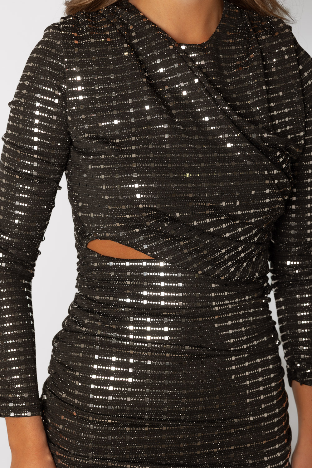 El VESTIDO que grita ¡You Slay Girl! Brillarás con él, simplemente brutal. Te contamos sus detalles por si viendo las imágenes no es suficiente. Tejido gordito estilo tweed fino, con cristalitos en dorado. Abertura cut out en un lateral, escote cerrado y manga larga. Es un vestido BRUTAL que sienta de 10. Póntelo para Nochebuena o Nochevieja y arrasa con él.