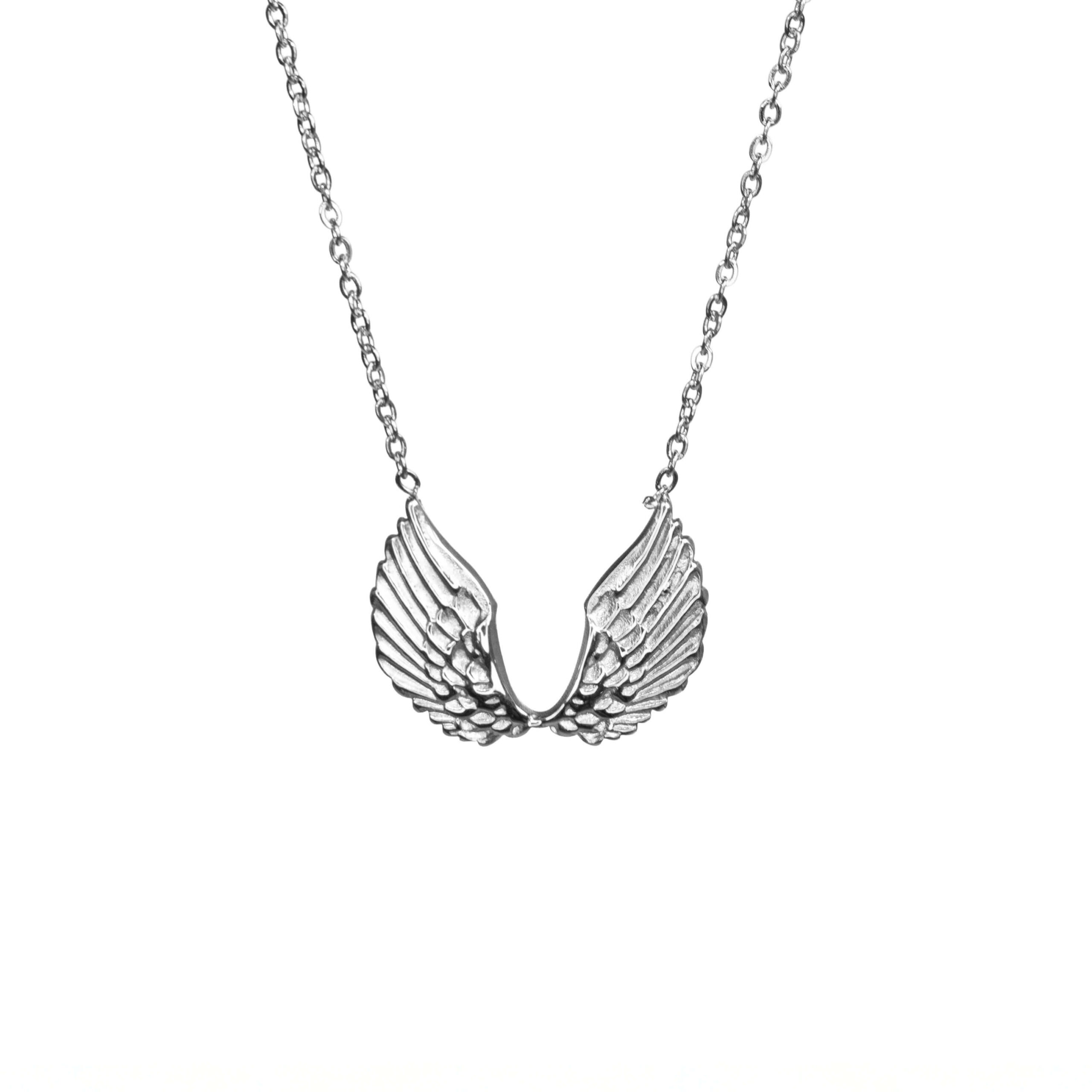 Collar corto con alas en plateado. Es de acero inoxidable y muy ponible para el día a día! No te lo vas a quitar😍