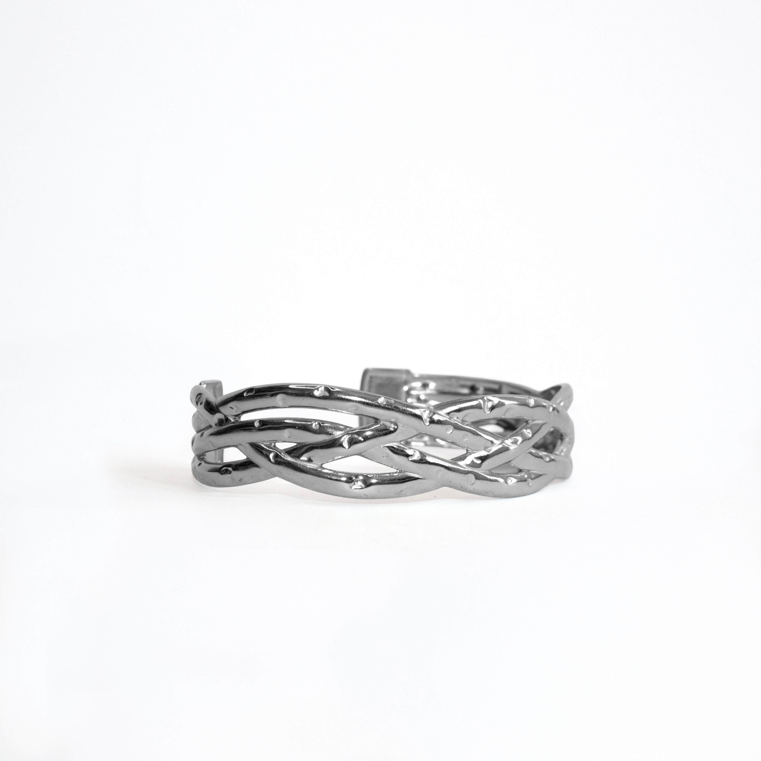 Brazalete plata regulable a tu medida. Está hecho con cuerdas entrelazadas entre sí. Tiene un rollo vintage que nos flipa. Los brazaletes son, sin duda, el complemento del verano.